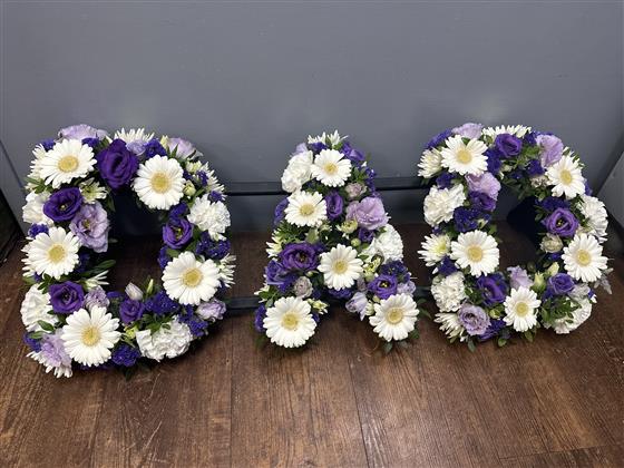 An alternative to massed letters, this mixed, open tribute is available as pictured or in a variety of colours.