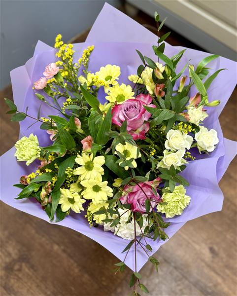 A FLORIST CHOICE bouquet, made from the best available selection of pastel flowers