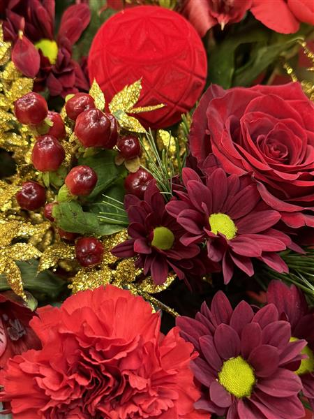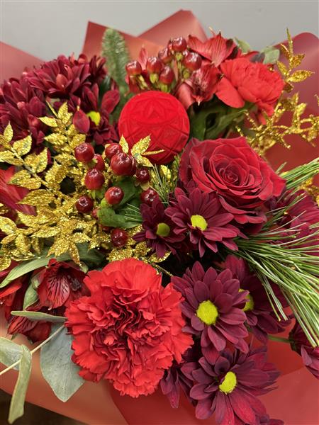 Not sure what to choose, leave it to us. This will be a seasonal selection of traditional Christmas flowers drawing from the red,burgandy, plum,gold and peachy colour palette